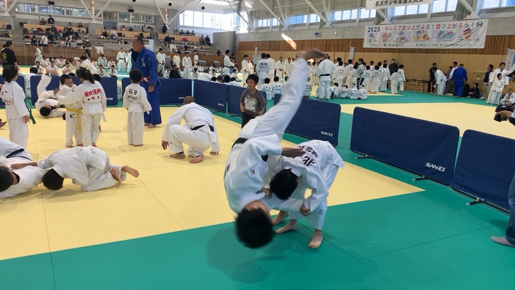 長浜市少年柔道交流会の一環として、柔道未経験者、初心者を対象に「はじめての柔道チャレンジ」を開催。