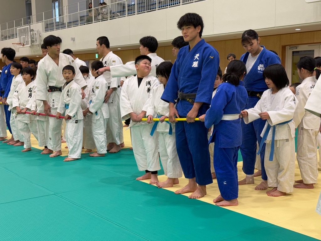 「スポーツ合宿inながはま 天理大学柔道部合宿」の3日目に、地元の小中学生を対象に、長浜市スポーツ大使の穴井隆将さんと天理大学柔道部員による「柔道教室・交流会」を開催。