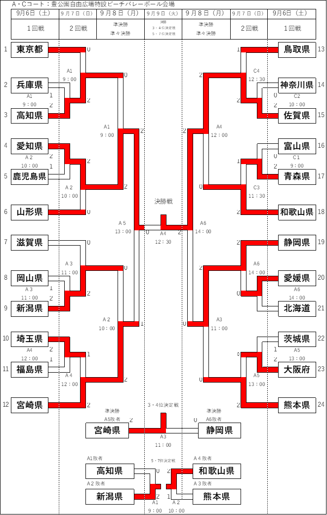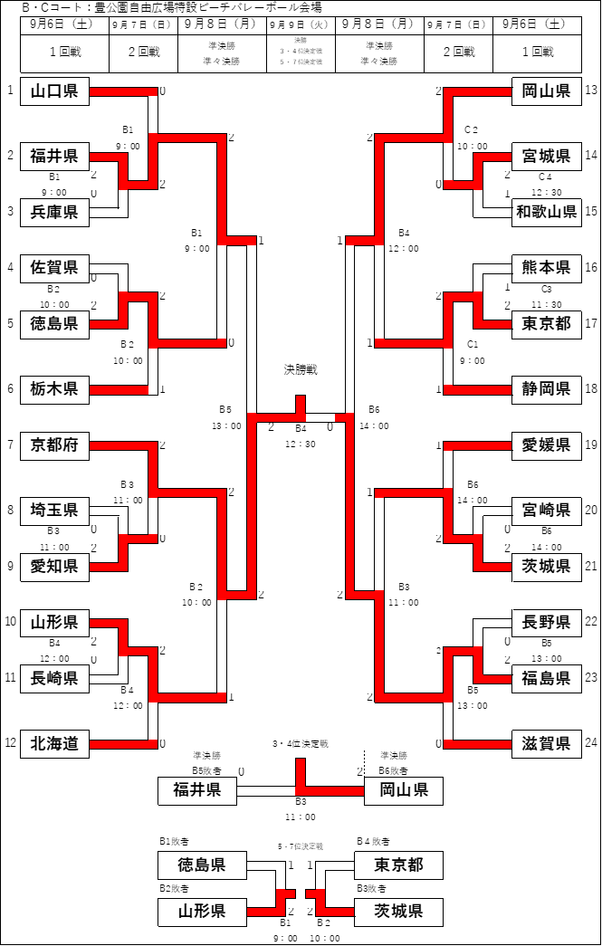 | 6 | 準決勝 | 第6試合 | 岡山県ー福島県 | 14:00 | 試合終了 | 岡山1-2福島 |