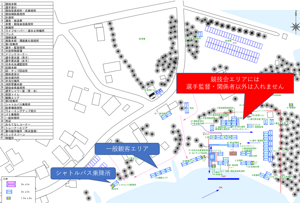 一般観覧者は「奥びわスポーツの森」駐車場をご利用ください。
