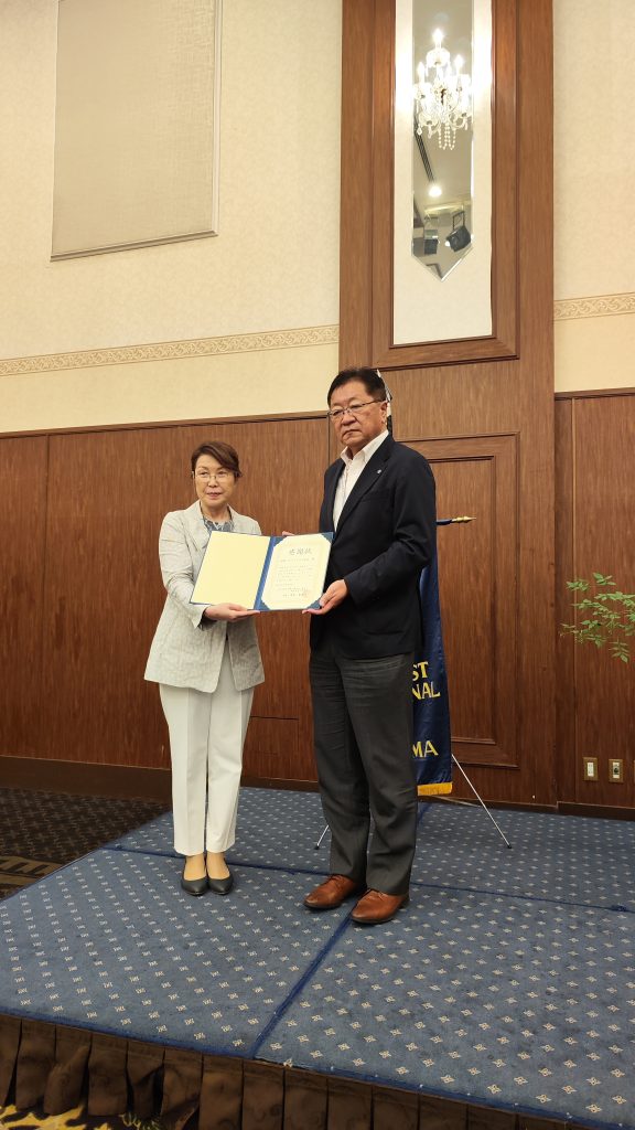 令和6年6月18日(火曜日)に、北びわこホテルグラツィエにおいて、物品協賛にかかる感謝状の贈呈を行いました。