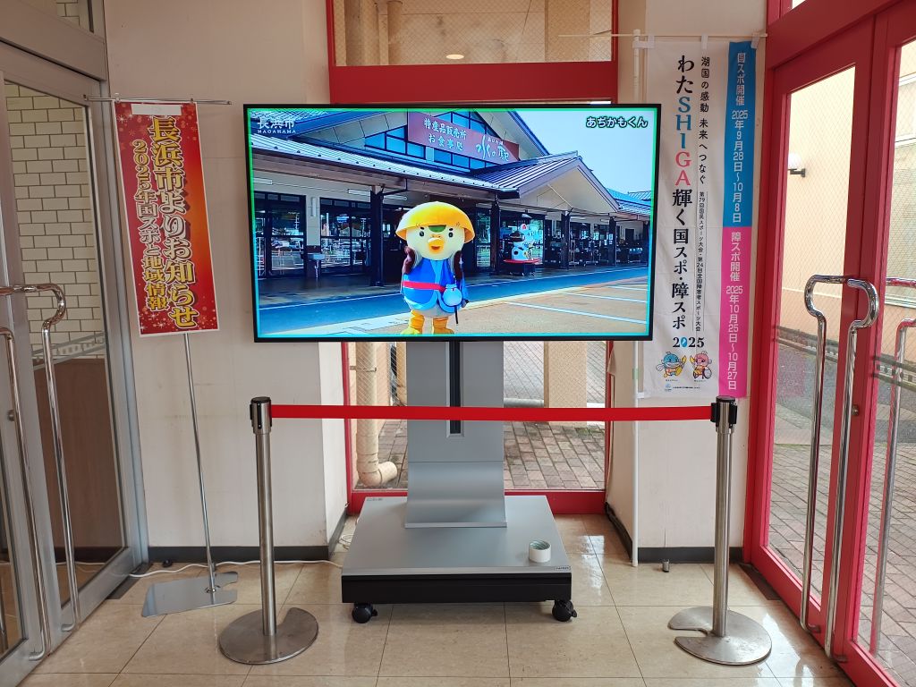 デジタルサイネージは、アル・プラザ長浜及び平和堂木之本店に設置しています。