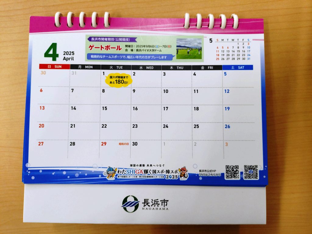 わたSHIGA輝く国スポ・障スポ長浜市広報PR用卓上カレンダー(2025.4月~2026.3月) 200冊